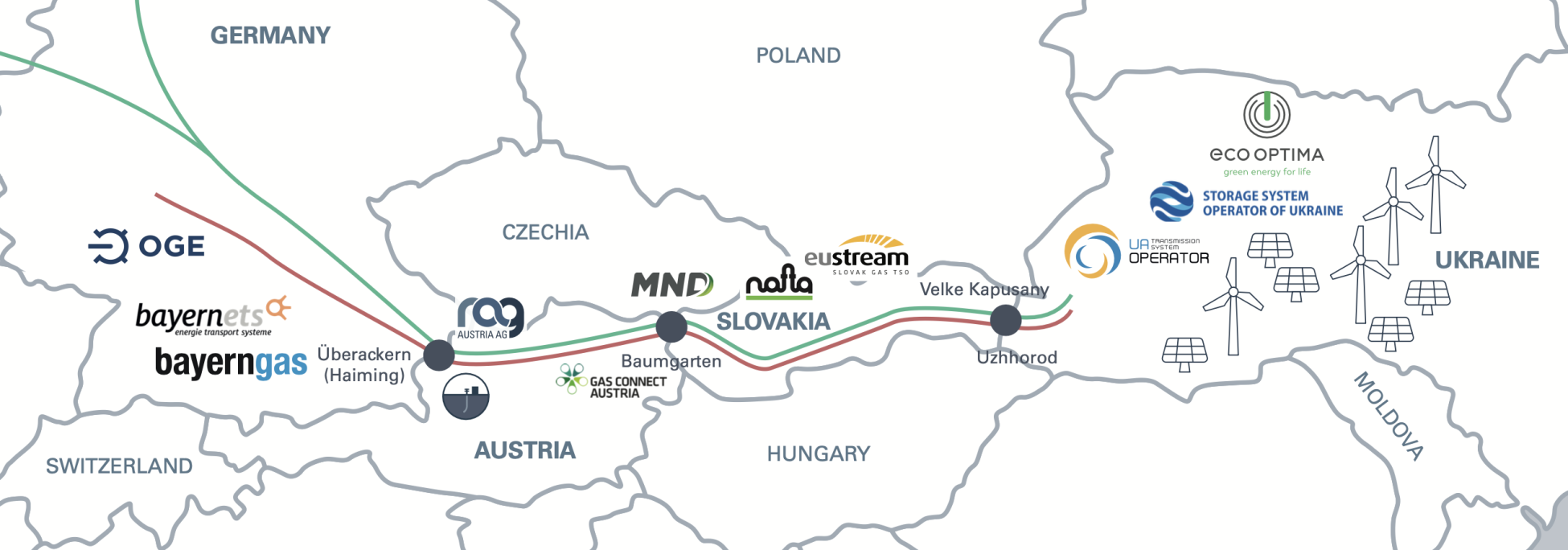 Projekt se soustředí na zajištění dodávek zeleného vodíku ze západní Ukrajiny v množství 144 GWh za den až do středního Německa. Na západní Ukrajině dokončujeme větrný park o výkonu 55 MW. Tuto energii bude možné použít k výrobě zeleného vodíku. Naším cílem je přizpůsobit současné tranzitní plynovody pro transport vodíku.